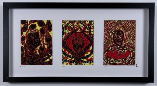 Op zo’n moment glipte alle ballen door mijn vingers en was ik het even helemaal kwijt. Tijdens de herstelperiodes leerde ik steeds beter keuzes te maken. Het derde deel heet “uitkomst”. De uitkomst is datgene te omarmen wat me gelukkig maakt. Om gelukkig te worden en blijven maak ik nu veel bewuster keuzes. Dit kunstwerk staat op een prominente plek in mijn atelier. Het herinnert me eraan om niet weer in een chaos te belanden en om op tijd terug te keren naar de kern. Dingen doen die me gelukkig maken.