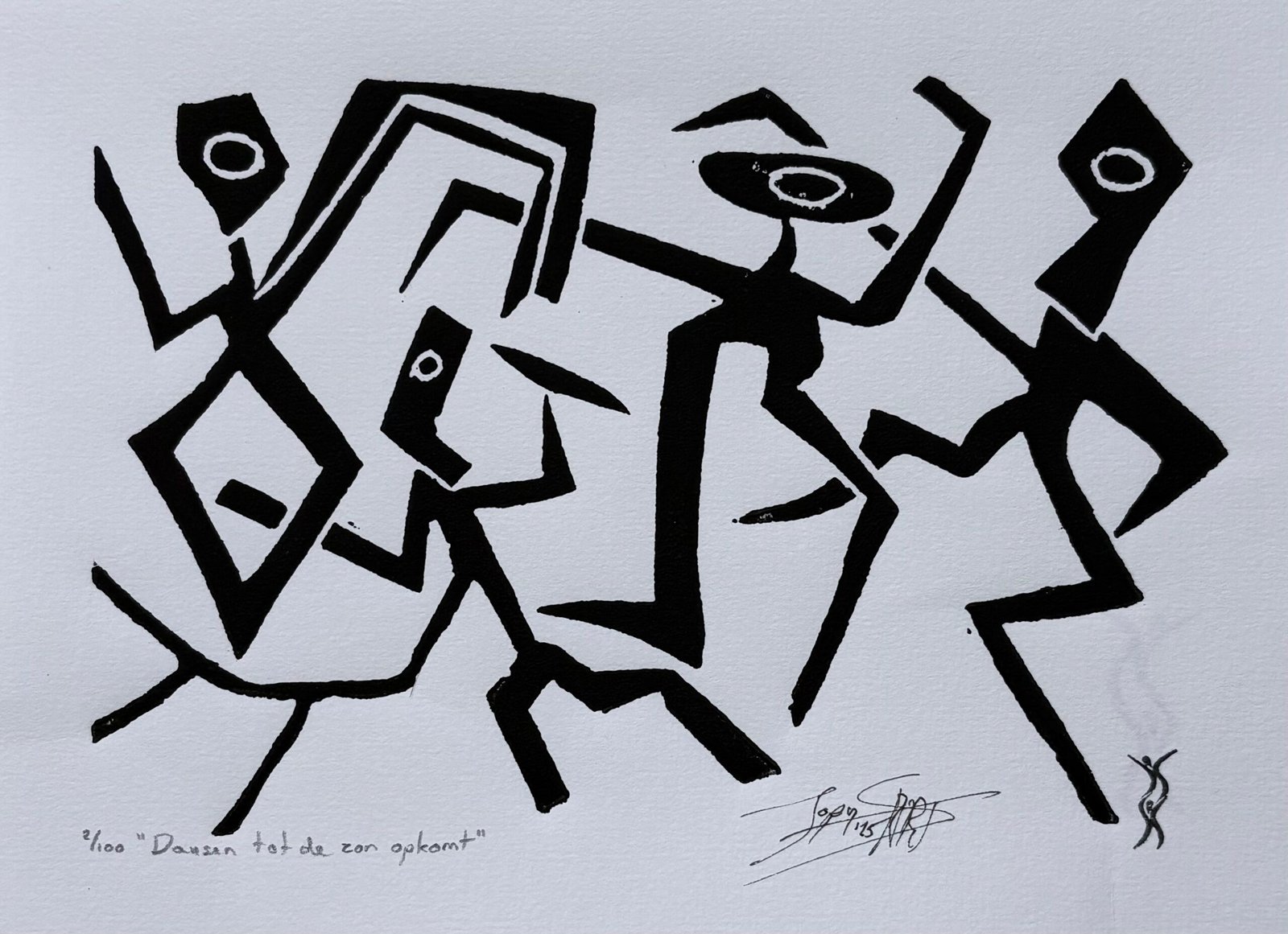 Elke print heeft rechts onderaan een stempel met mijn logo en het jaartal van de druk. Linksonder vermeld ik de titel en het oplagenummer in potlood. Op de achterkant staat mijn logo plus signatuur (bij drukken gemaakt vóór 2026 staat mijn signatuur met jaartal links onderaan de print).