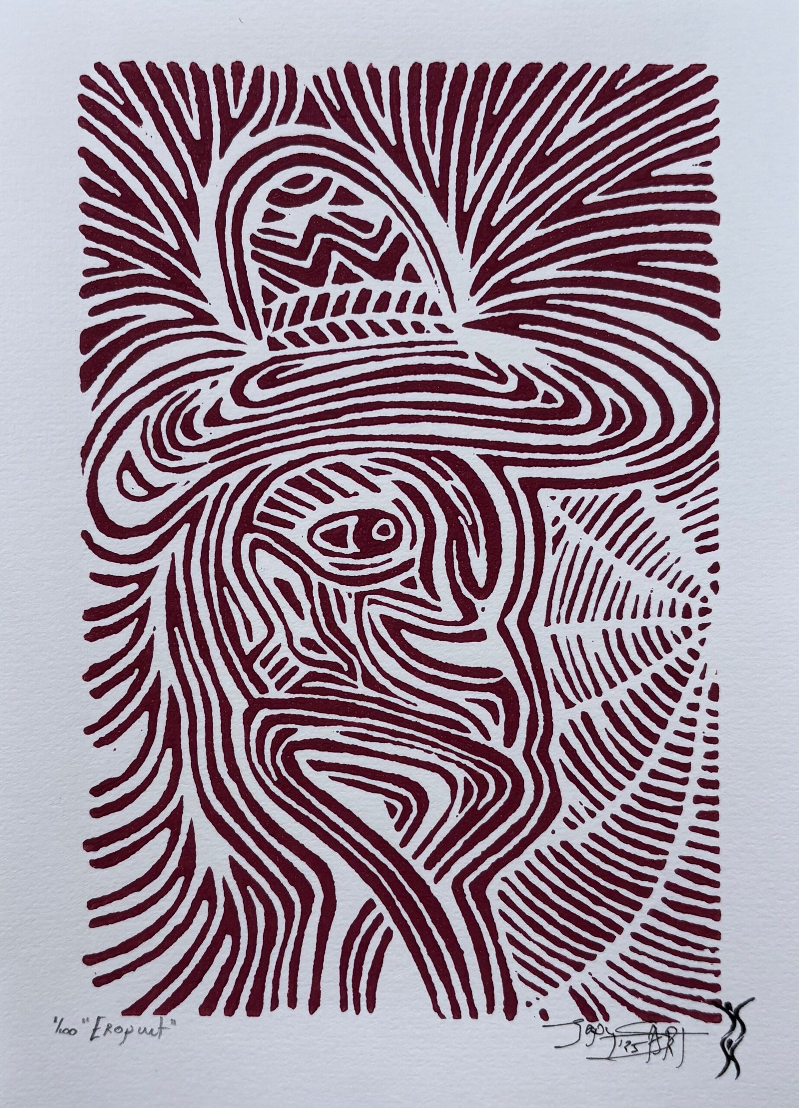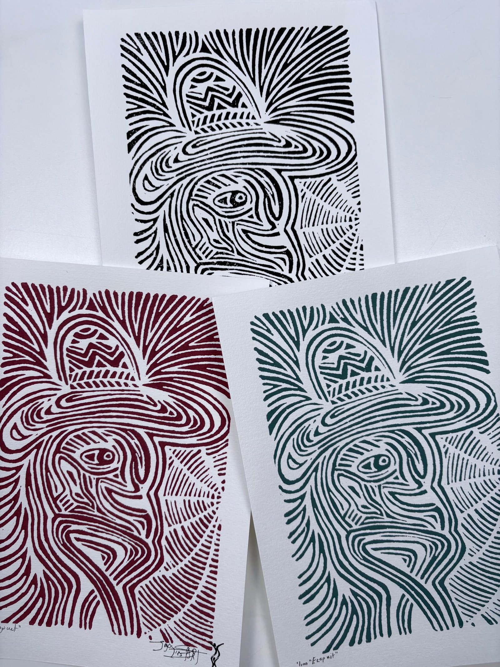 Elke print is handgedrukt. Hierdoor kunnen de prints onderling iets van elkaar verschillen. Dit hoort bij het drukken met de hand en maakt iedere linoprint uniek. Het geeft de print een eigen karakter.