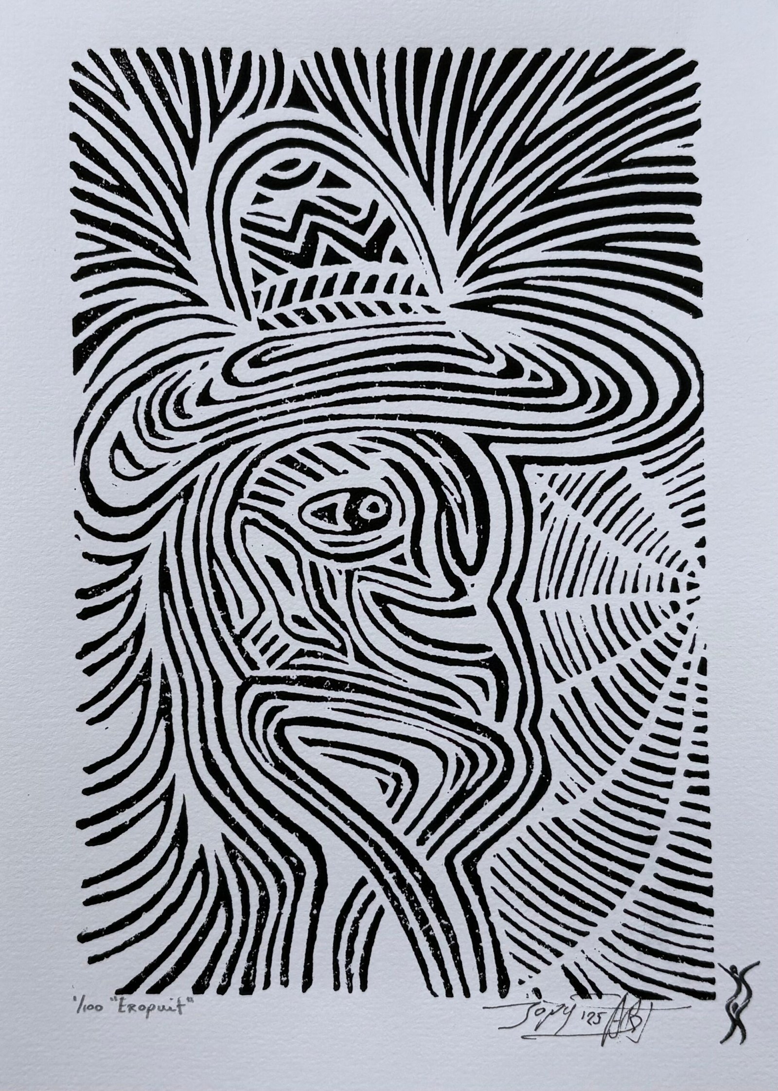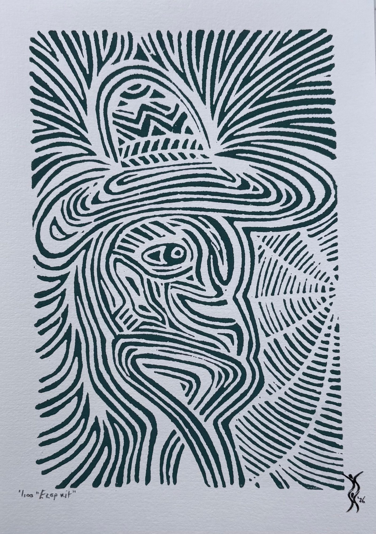 Elke print heeft rechts onderaan een stempel met mijn logo en het jaartal van de druk. Linksonder vermeld ik de titel en het oplagenummer in potlood. Op de achterkant staat mijn logo plus signatuur (bij drukken gemaakt vóór 2026 staat mijn signatuur met jaartal links onderaan de print).